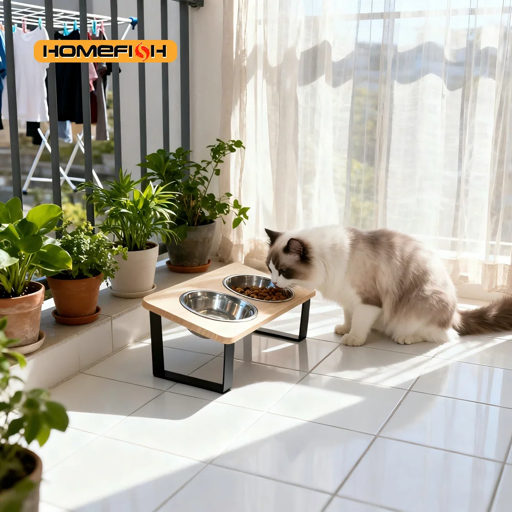 Be the first to review “Elevated Cat Bowl Pet Feeder 15° Tilted Raised Cat Food Bowl with Wooden Base Includes 2 Stainless Steel Bowls Suitable for Cats”